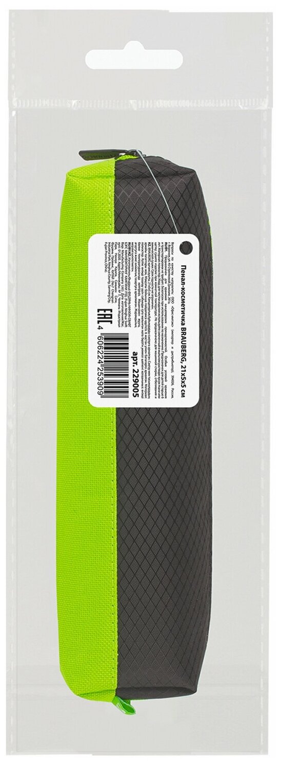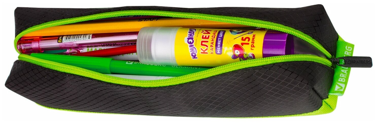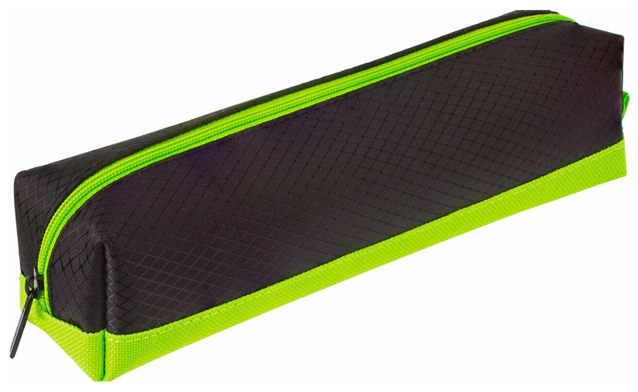 пенал на молнии BRAUBERG Black and Bright 21х5х5см черно-зеленый п/э Green