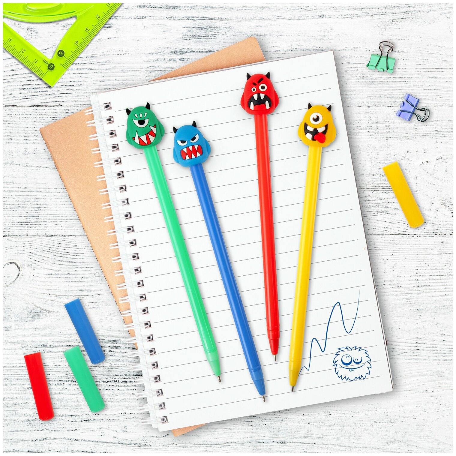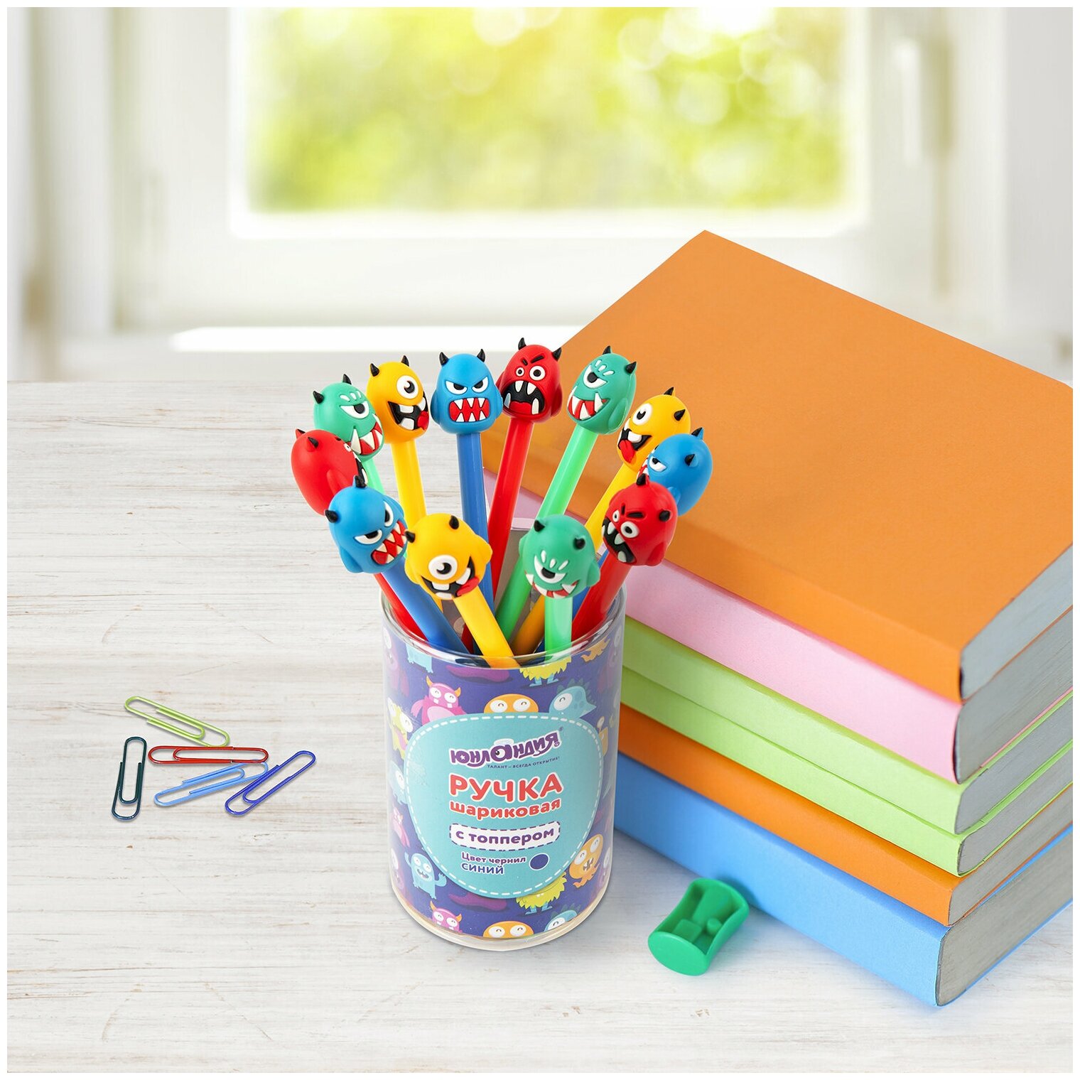 Шариковая ручка масляная ЮНЛАНДИЯ "Монстрик" с милой игрушкой на корпусе. Шариковая ручка серии FUNNY YUMMY с ярким корпусом и оригинальным дизайном топперов в виде монстрика. Благодаря привлекательному дизайну ее не захочется выпускать из рук, а чернила на масляной основе обеспечат мягкое плавное письмо. Диаметр игольчатого пишущего узла, равный 0,7 мм, создает линию письма, равную 0,35 мм. Длина сменного стержня составляет 129 мм. Цвет чернил - синий. Удобный стакан для размещения ручек в розничном магазине.