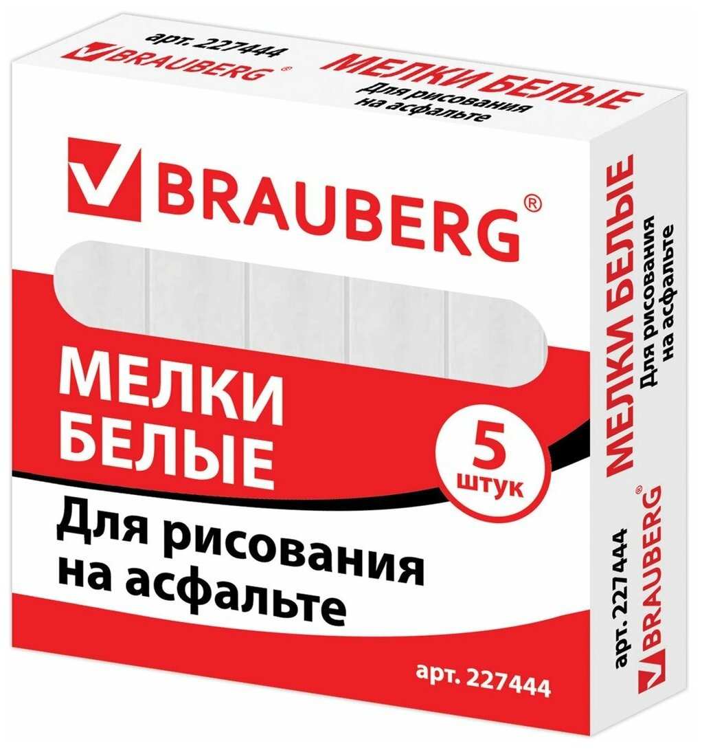 мел белый BRAUBERG 5шт квадратный утолщенный (227444)