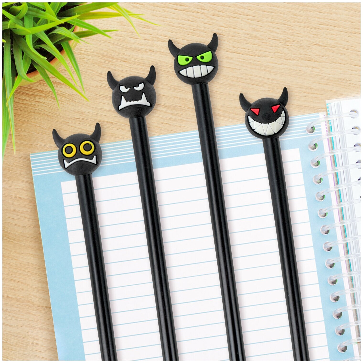 Шариковая ручка масляная ЮНЛАНДИЯ "Чертёнок" с милой игрушкой на корпусе. Шариковая ручка серии FUNNY YUMMY с контрастным черным корпусом и оригинальным дизайном топперов в виде чертёнка. Благодаря привлекательному дизайну ее не захочется выпускать из рук, а чернила на масляной основе обеспечат мягкое плавное письмо. Диаметр игольчатого пишущего узла, равный 0,7 мм, создает линию письма, равную 0,35 мм. Длина сменного стержня составляет 129 мм. Цвет чернил - синий. Удобный стакан для размещения ручек в розничном магазине.