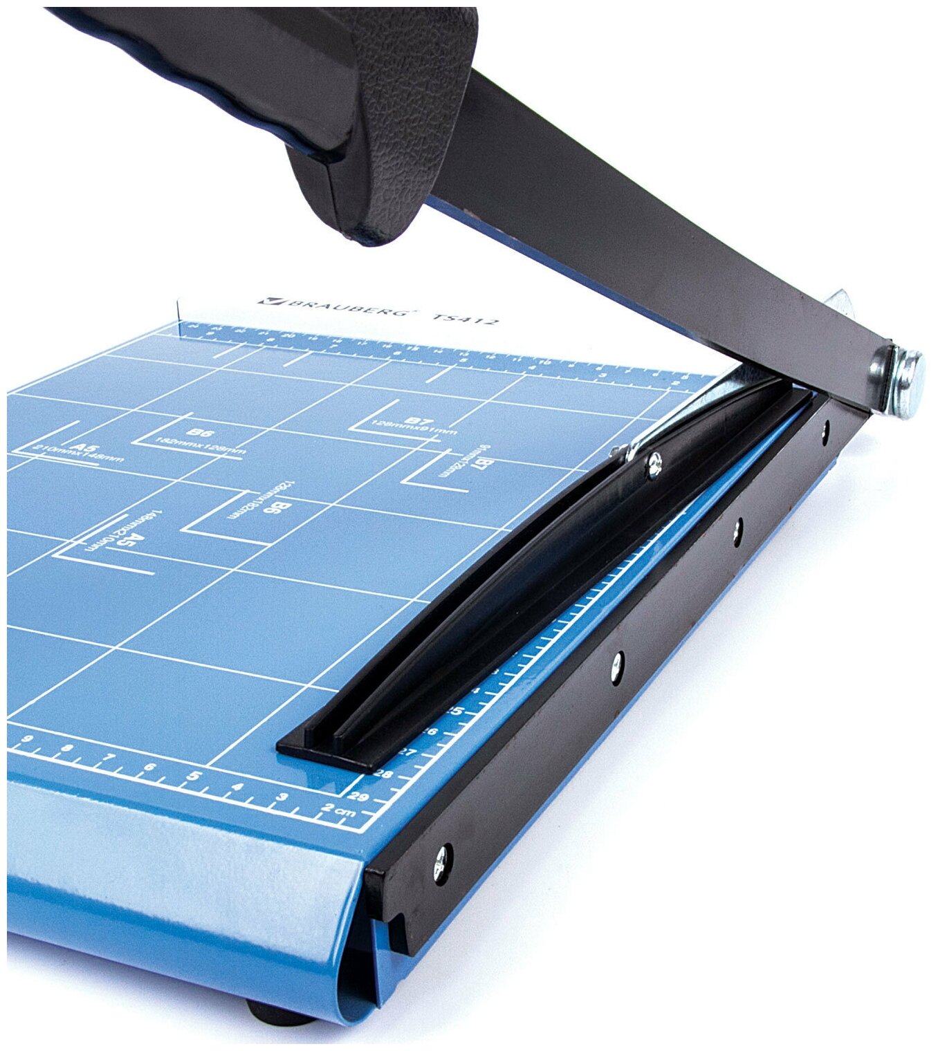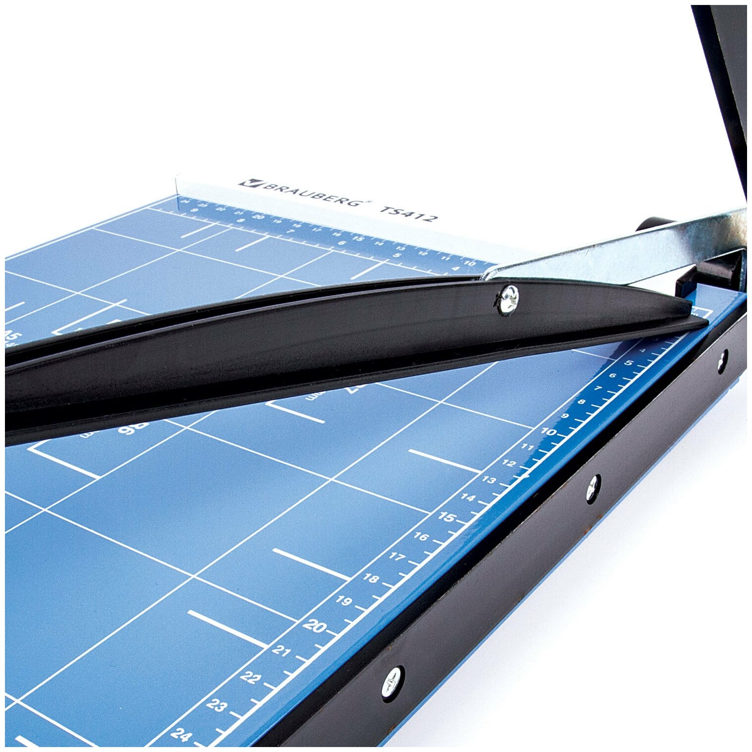 На поверхности основания резака Brauberg TS412 нанесена разметка под различные форматы, что облегчает работу и повышает производительность труда. Удобная разметка рабочей поверхности в сочетании с регулируемым упором позволяют точно наметить линию реза.