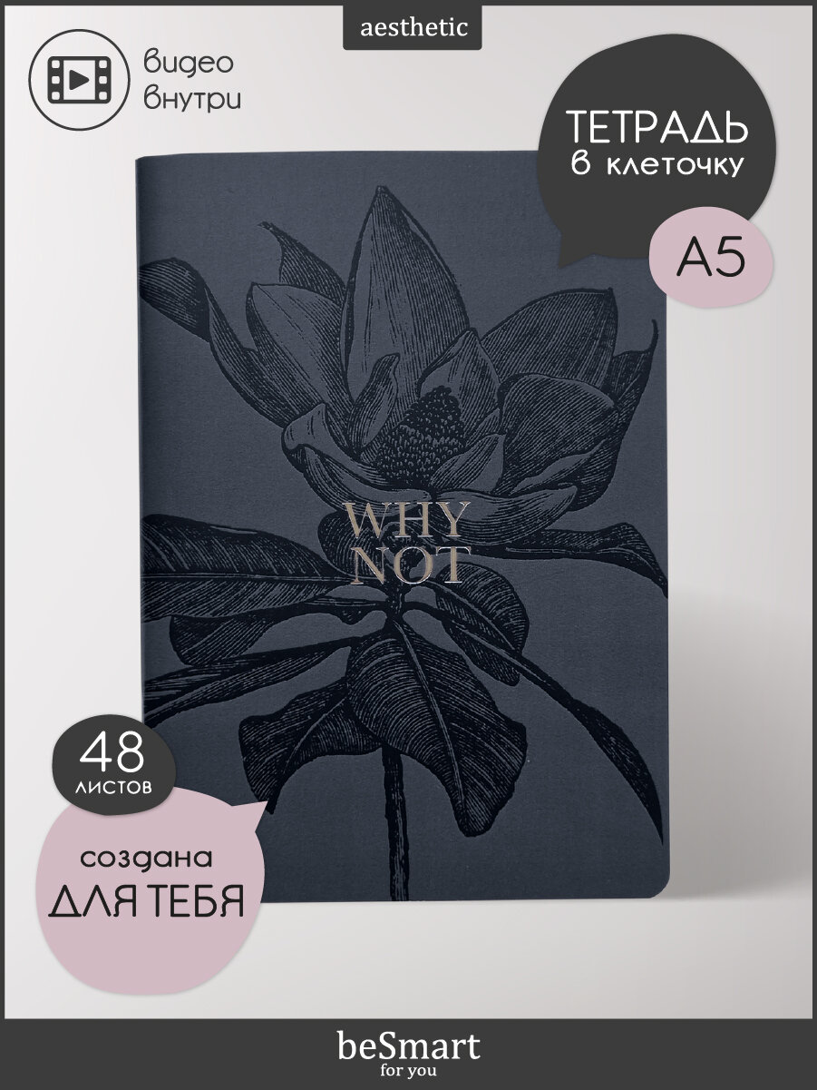 Тетрадь Aesthetics. Черный цветок 48 листов клетка А5 BeSmart