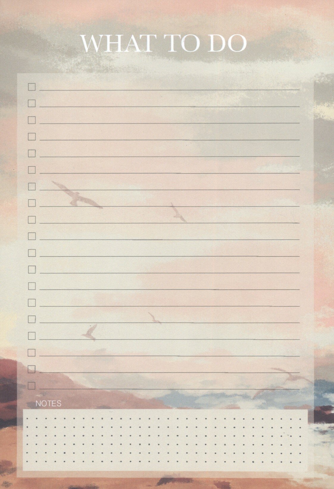Утонченная и спокойная, с благородными оттенками цветов в палитре, коллекция "View" от Be Smart - это удивительно завораживающие пейзажи, нарисованные специально для искателей эмоций. Мы получили коллекцию очень непохожую на то, что было раньше, и от этого еще более индивидуальную. Залог успеха - это тайм-менеджмент и грамотное распределение дел. С этим тебе точно поможет наш отрывной планнер "Список дел" на неделю А5 формата (145х210 мм), который комфортно всегда держать под рукой. Удобное клеевое скрепление позволяет легко удалять листы из планнера.Сам блок на 28 листов - из плотной белой бумаги плотностью 80 г/м2 с цветной печатью с одной стороны и прямыми уголками.Всю неделю ты можешь записывать свои задачи, проставлять отметки об их выполнении и добавлять заметки. Никогда планирование ещё не было таким приятным процессом!