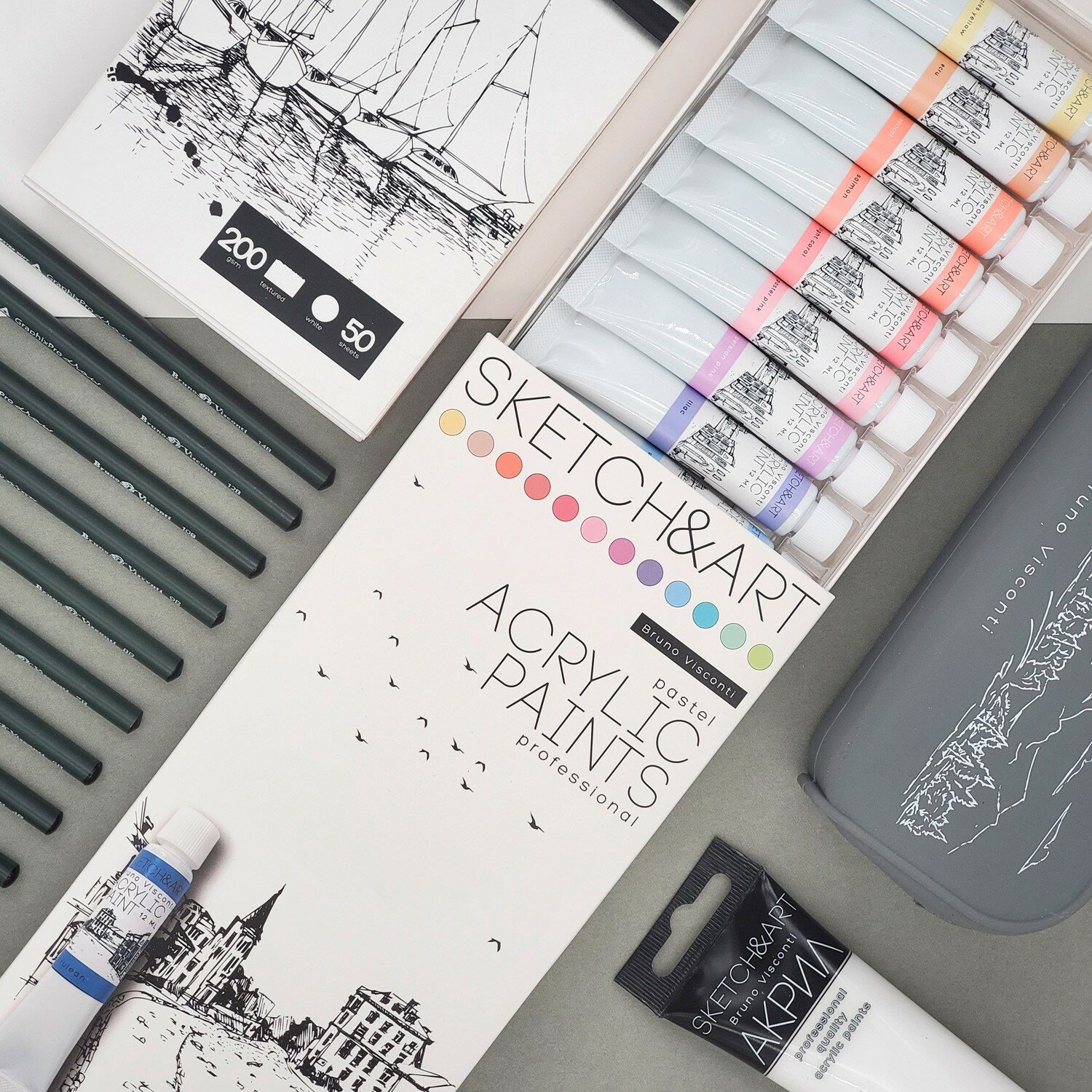 Краски акриловые Sketch&Art 12 пастельных цветов Bruno Visconti