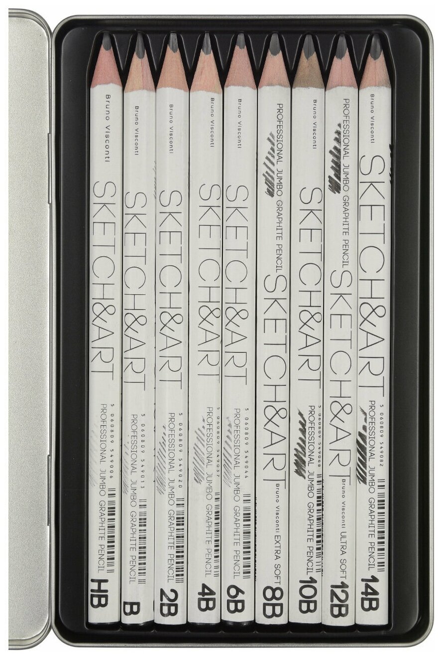 Набор чернографитовых карандашей Sketch&Art Jumbo 9 штук HB-14B Bruno Visconti