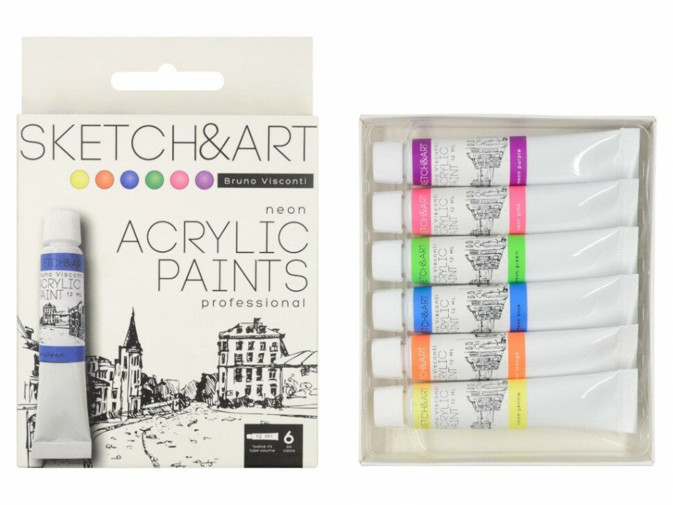 Краски акриловые Sketch&Art 6 цветов неоновые Bruno Visconti