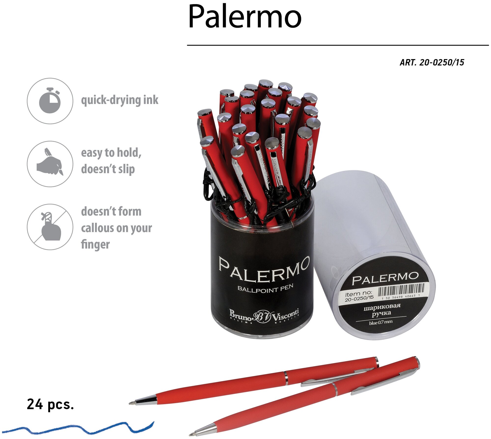 На сегодняшний день товар «Ручка шариковая автоматическая Palermo синяя красный корпус Bruno Visconti» можно купить с кешбеком в 1 магазине: Яндекс.Маркет