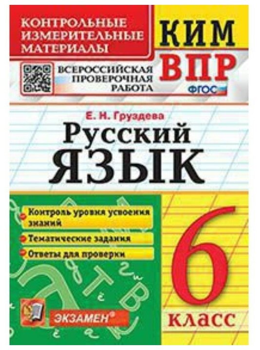 КИМ ВПР. РУССКИЙ ЯЗЫК. 6 КЛАСС. КОНТРОЛЬНЫЕ ИЗМЕРИТЕЛЬНЫЕ МАТЕРИАЛЫ. ВСЕРОССИЙСКАЯ ПРОВЕРОЧНАЯ РАБОТА. Издание третье переработанное и дополненное. Ф (Груздева Евгения Николаевна); Экзамен, 2023
