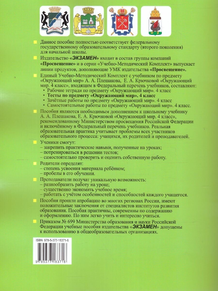 В предлагаемом пособии представлены тесты по всем темам учебного комплекта А. А. Плешакова, Е. А. Крючковой "Окружающий мир. 4 класс". Этот материал также может быть использован учителями, работающими по другим учебникам.
