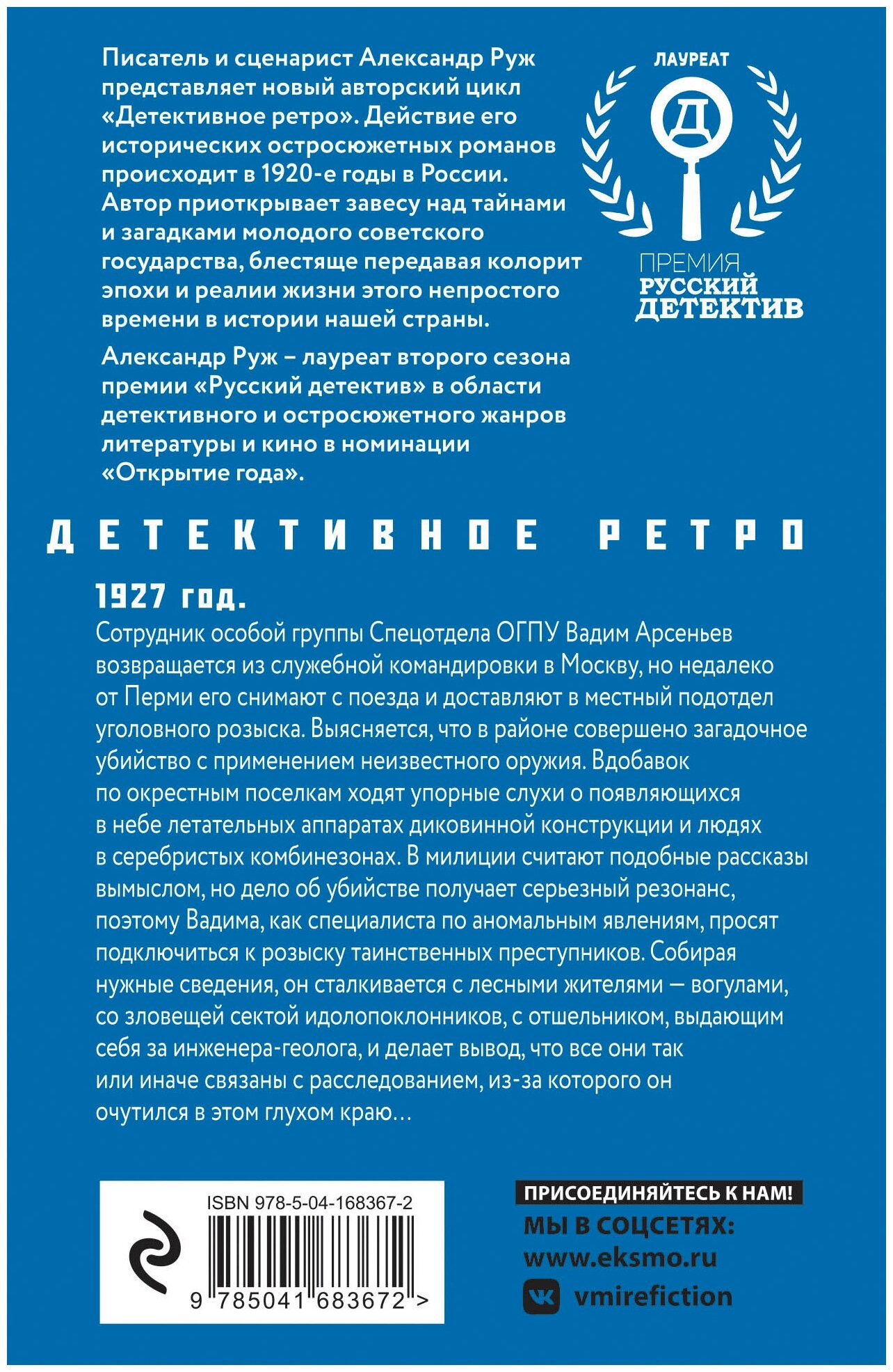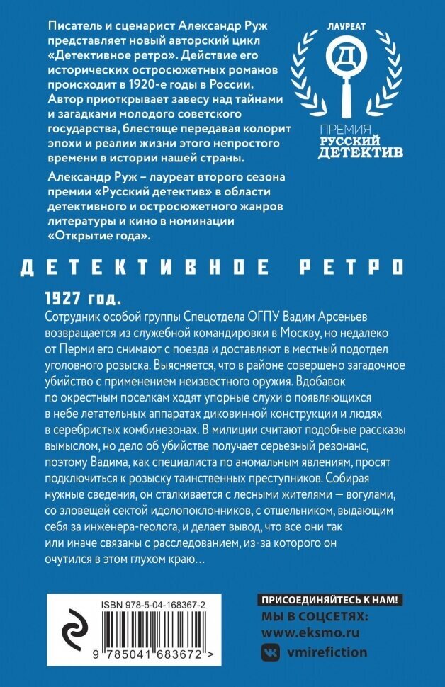 Приятный подарок — новая книга Александра Ружа. Пятая в серии о Вадиме Арсеньеве и третья в нынешнем году. Обычно такая скорострельность отражается на качестве, но в данном случае ничего подобного не скажешь. Планка выдержана на прежнем высоком уровне во всех аспектах: язык, сюжет, историческая подложка, яркие персонажи. Более того, каждый новый роман не похож на предыдущий. В «Ведьмином кольце» — сложный, но красивый прием: все главы написаны от имени разных персонажей, со своим вИдением ситуации, оригинальными речевыми характеристиками и персональными «скелетами в шкафу». Паззл, сложившийся в результате, выглядит крайне интересно. Ну и Пермская аномальная зона создает неповторимый антураж. Не знаю, выйдет ли до конца года следующий роман, но уже как-то хочется. Затягивает.