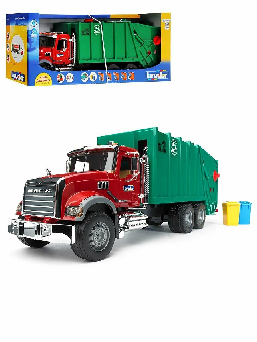 - Мусоровоз MACK зелёный фургон, красная кабина, 02-812 02812 Bruder Спецтехника игрушка