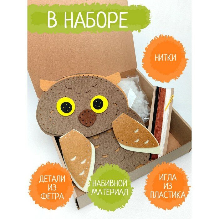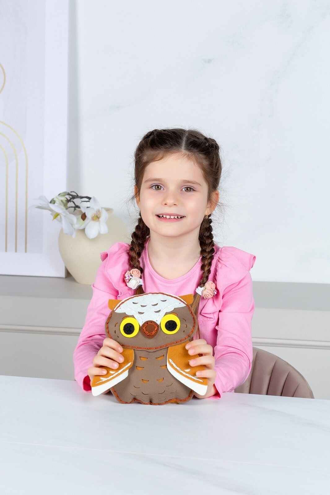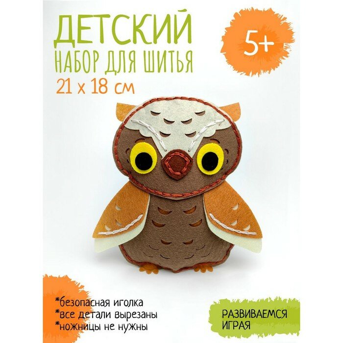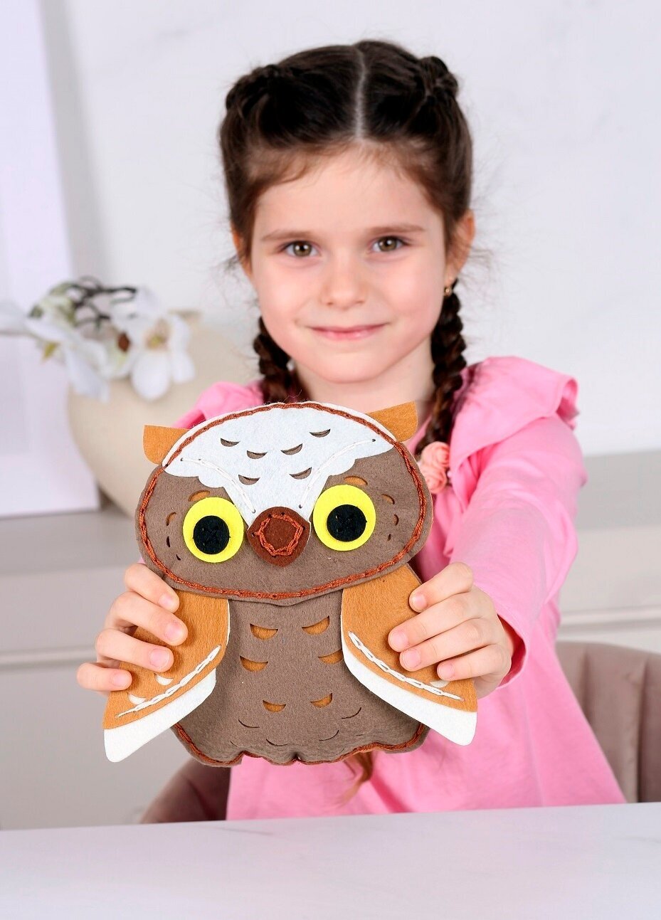 Набор для шитья игрушки "Сова" из фетра. Благодаря перфорированным отверстиям, подробной инструкции и пластиковой безопасной иголке, малыш сможет самостоятельно сшить мягкую игрушку Сова. Детали из фетра готовы к использованию, ножницы не потребуются! Наши наборы позволят Вашему ребенку освоить навык шитья, потренировать мелкую моторику, усидчивость и развить творческий потенциал. О пользе рукоделия сказано не мало, но это действительно работает! Дети искренне радуются своим достижениям и новым умениям, сколько эмоций они получают и отдают! Если Вы ищите подарок для ребенка, то он перед Вами! Бюджетный и качественно исполненный! Состав: детали из фетра, наполнитель, пластмассовая игла, нитки, инструкция. Размеры готовых игрушек: Сова 21*18 см.Набор предназначен для девочек и мальчиков от 5-ти лет. Под контролем взрослых можно пораньше. Наборы для творчества от ТМ Санта Лючия станут интересным и полезным занятием для Вашего ребенка!