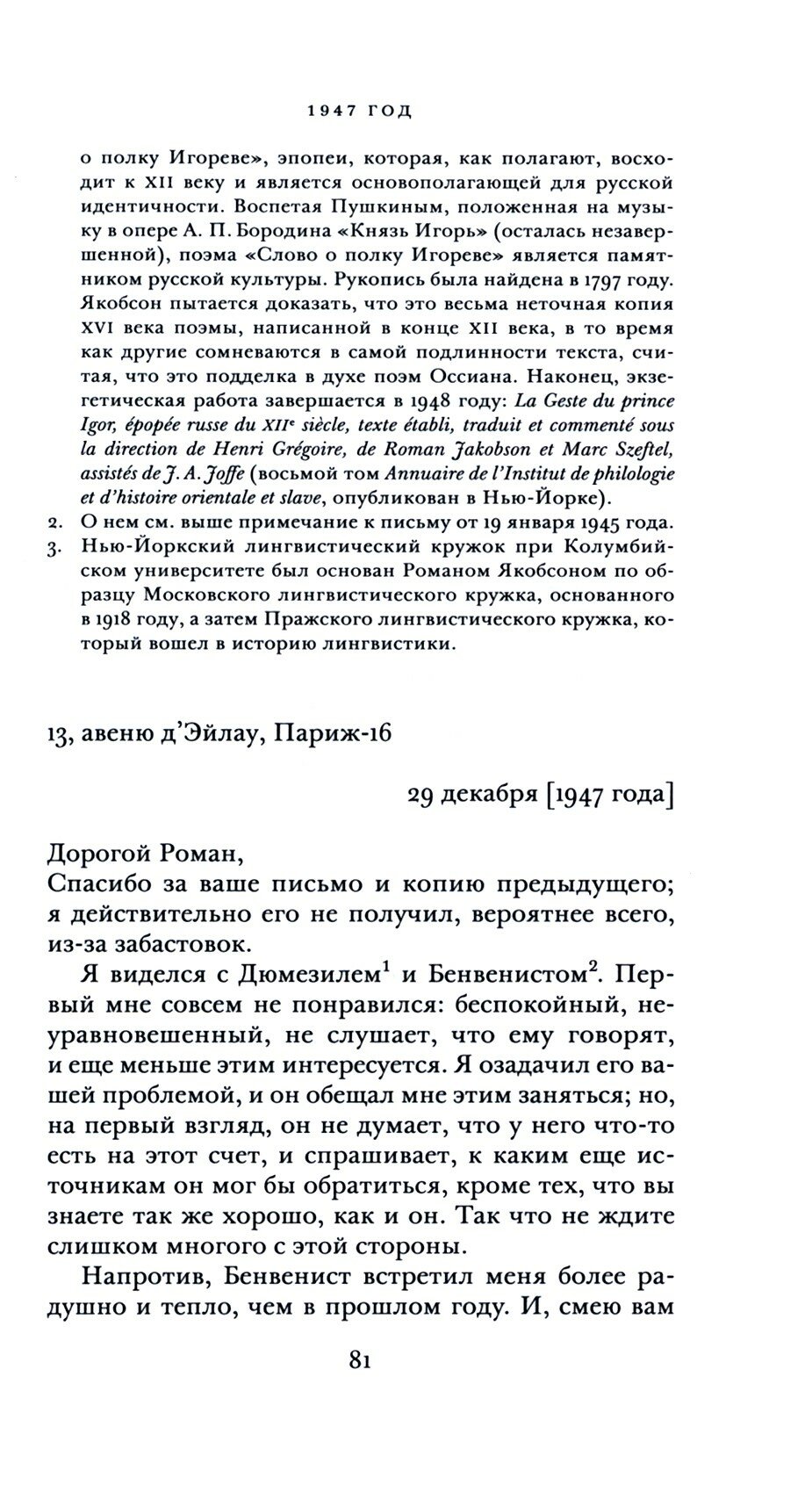 Как и в случае с пятью предыдущими посмертными изданиями Клода Леви-Стросса в серии «Библиотека XXI века», этот том, представляющий сорокалетнюю «Переписку» с Романом Якобсоном, никогда бы не появился на свет, если бы не энтузиазм Моник Леви-Стросс и ее пристальное внимание к каждому слову. Согласившись подготовить к печати этот том, написать к нему предисловие и комментарии с приложениями, Эмманюэль Луайе и Патрис Манилье восстанавливают для каждого из писем все его контексты — научные, исторические, политические и личные. Большинство писем Романа Якобсона были переведены с английского Патрисом Манилье. Без совместных усилий всех троих этого тома не было бы.