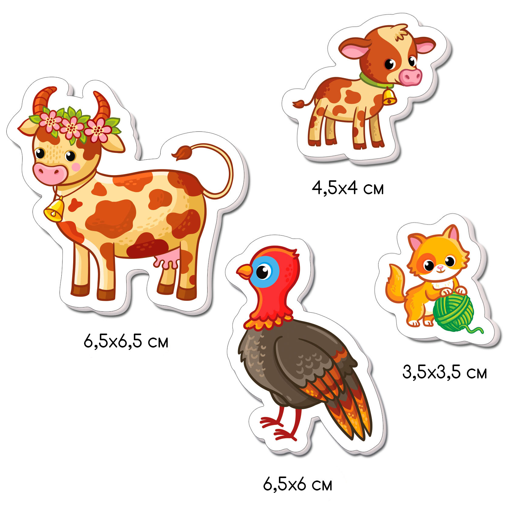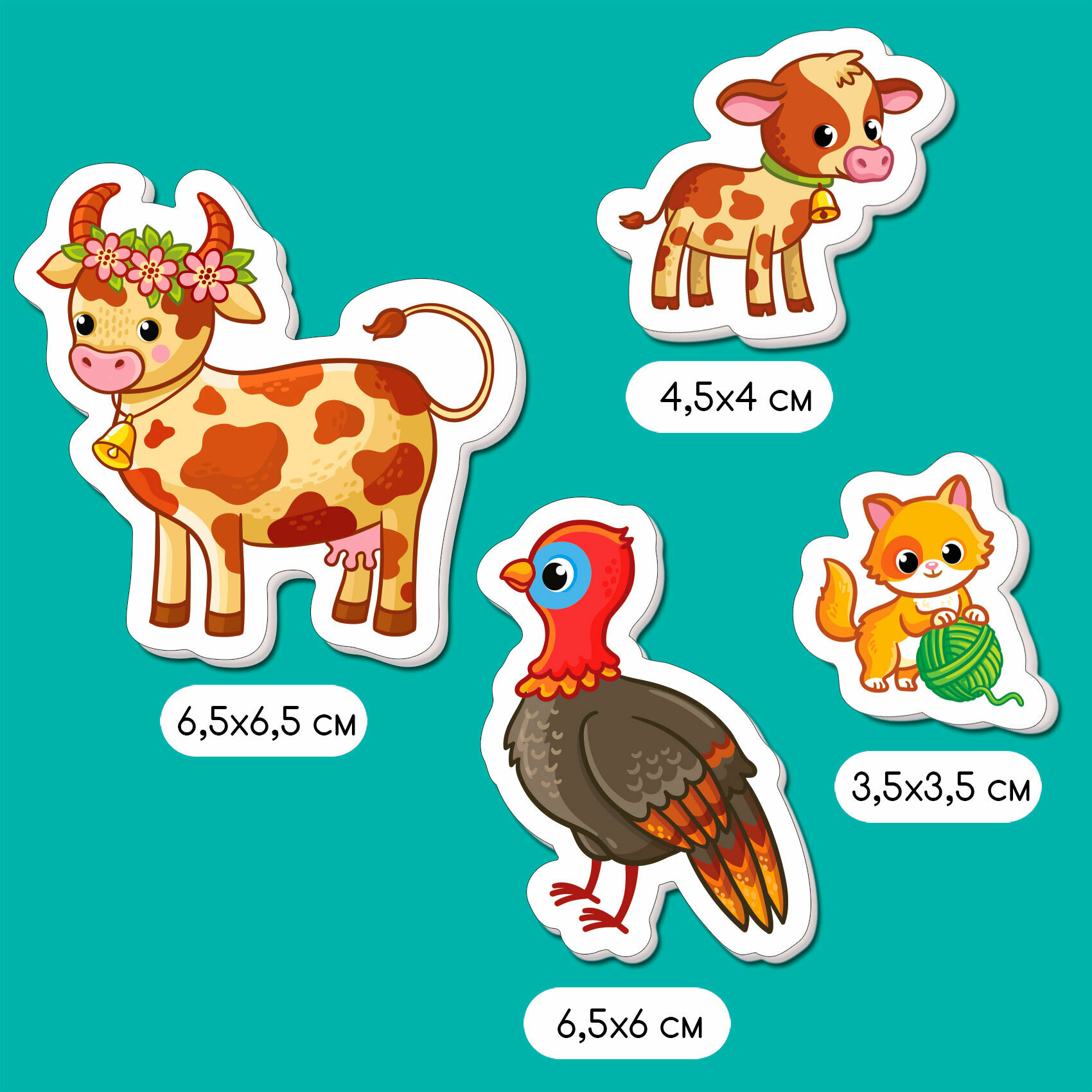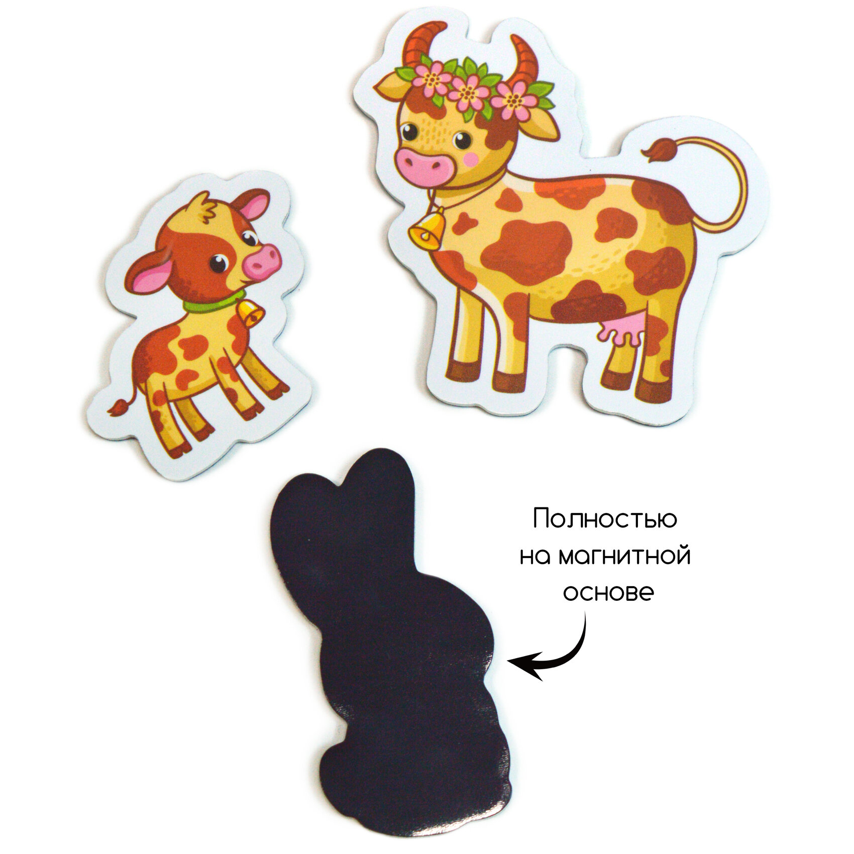 Перед вами набор магнитных фигурок для сюжетно-ролевой игры. Разместите магнитики на холодильнике или магнитной доске. Благодаря толщине материала ребёнку будет удобно перемещать фигурки по поверхности. Познакомьте малыша с названиями животных и детёнышей, помогите подобрать пары. Поощряйте желание ребёнка придумывать сюжеты для взаимодействия героев.