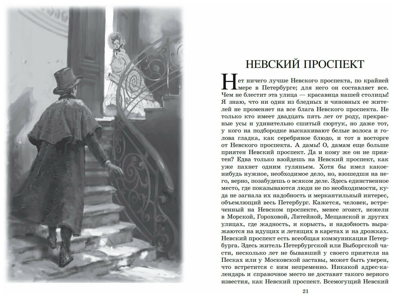 «Петербургские повести» Николая Васильевича Гоголя (1809–1852) — цикл из пяти произведений, объединенных местом действия — Петербургом. Это город обмана и иллюзий, город, искушающий каждого, кто в него попадает, город контрастов. Переплетая реальность и фантастику, автор создает целую галерею образов-портретов, которые складываются в единую картину жизни. Здесь есть все: великолепие светской жизни и заботы «маленького» человека, их надежды и переживания, порочность и помешательство. Таким видел Петербург Гоголь почти 200 лет назад, таким он остается и сейчас. Именно поэтому повести до сих пор актуальны и читаются с интересом.
