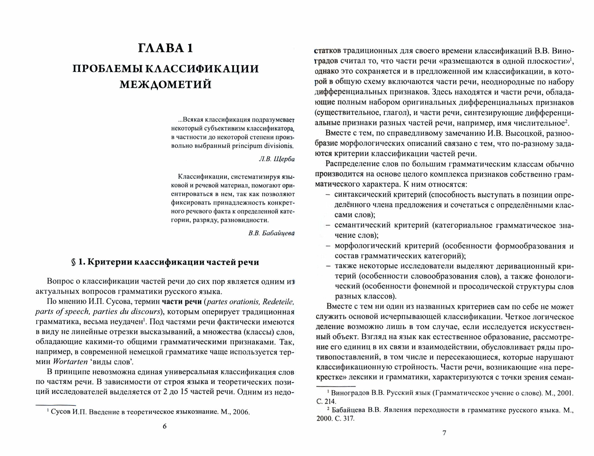 Книга представляет собой исправленное и дополненное издание учебного пособия «Место междометий в системе частей речи» (2005). В настоящем пособии рассматривается одна из наиболее дискуссионных в отечественной грамматике часть речи — междометие. Для более точной квалификации статуса данных слов особо рассматриваются актуальные вопросы классификации частей речи в целом, а также всесторонне анализируются примеры взаимодействия междометий с другими классами слов — с языковыми фактами знаменательных и служебных частей речи. Все теоретические и практические положения учебного пособия сопровождаются многочисленными примерами из художественной, поэтической и современной разговорной речи.