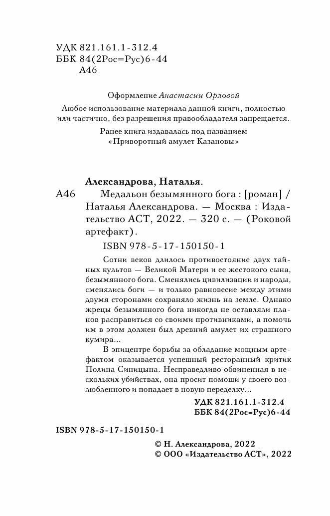 Медальон безымянного бога (Александрова Наталья Николаевна); ИЗДАТЕЛЬСТВО "АСТ", 2022