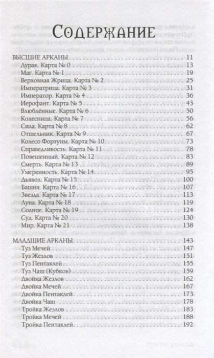 Содержание книги полностью соответствует названию-автор делится своим опытом в прочтении карт Таро,приведены примеры из практики,как каждая карта отыгрывалась в разных вопросах. Написана простым языком,информация доступна к пониманию,без заумных мыслей.Это не справочник со значениями,для новичка в качестве первой книги не подойдёт.Интересно будет почитать тому,кто уже работал с картами и понимает их,найдёте что-то новенькое и полезное для себя.