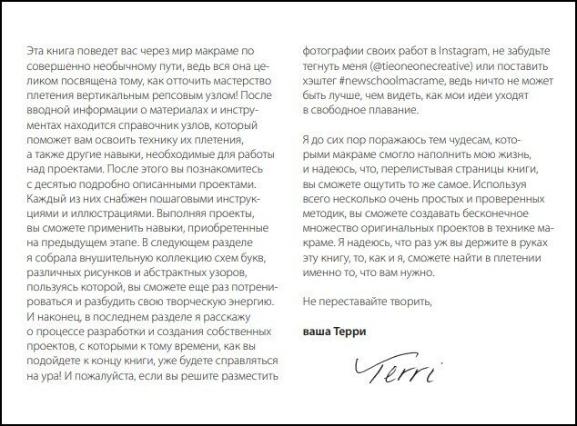 Роскошные авторские проекты, подробнейшие мастер-классы с множеством иллюстраций, да еще с фирменным юмором от Терри Уотсон. От ваших произведений невозможно будет оторвать глаз! И вы докажете, что макраме может быть не только красивым, но и стильным, и очень современным!
