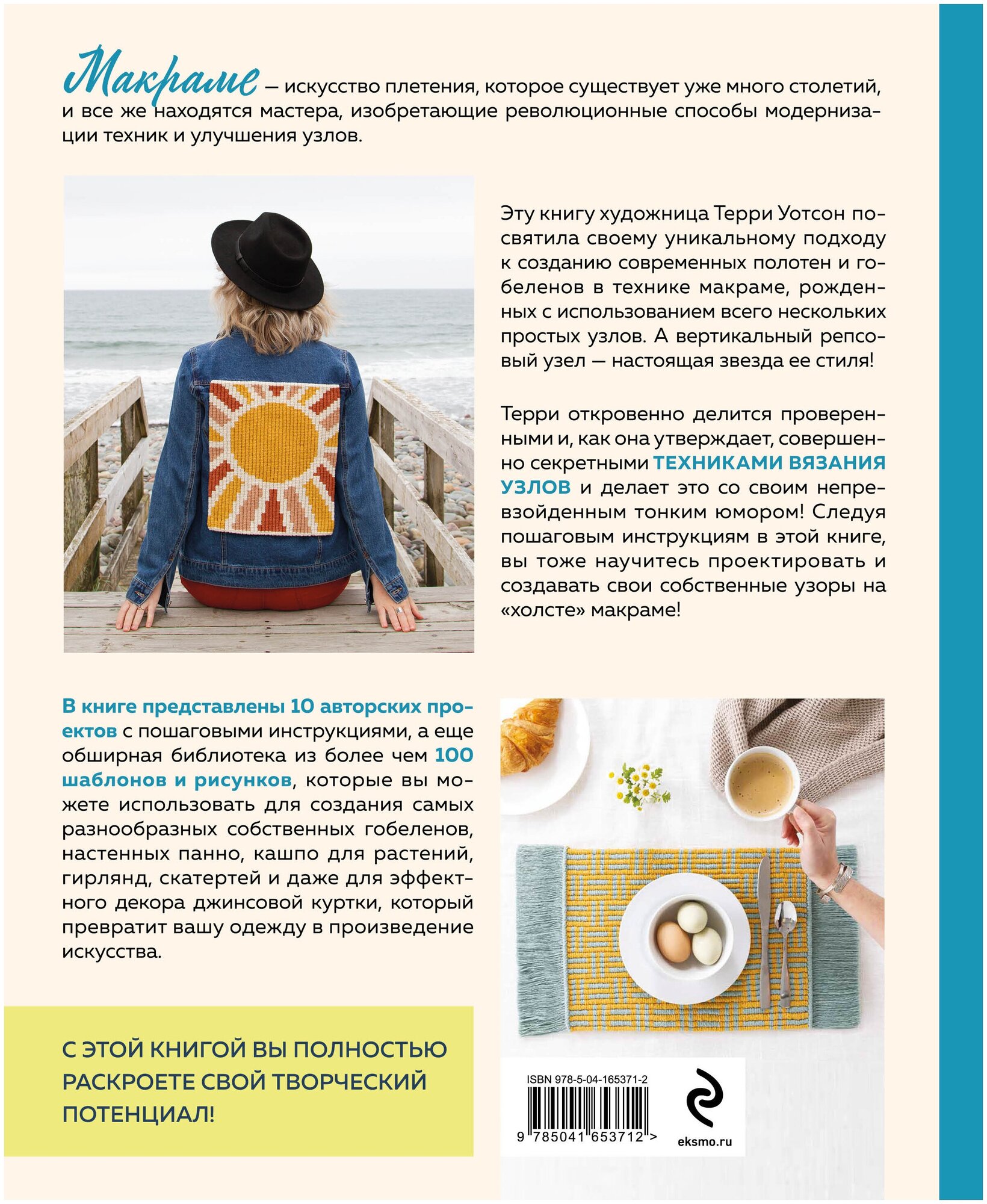 Но макраме автора этой книги художника Терри Уотсон совсем другое и, наверное, больше всего походит на яркий гобелен. Да и используется гораздо шире - как вам, например, роскошное плетеное солнце на спине джинсовой куртки? Любая картина в технике макраме, да еще с использованием минимального количества простых узлов - это настоящая трендовая революция в мире рукоделия!
