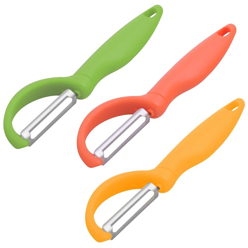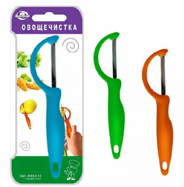 Овощечистка мультидом AN53-13Незаменимое приспособление для очистки корнеплодов и клубней и для удаления кожицы у фруктов. Плавающий нож специальной формы задаст необходимую глубину среза и пройдет по неровностям поверхности, что позволит легко и экономично очистить овощи, сохранив богатый витаминами верхний слой. При помощи овощечистки вы сможете без труда снять кожицу с киви и других нежных плодов, удалить глазки у картофеля и кожу у апельсина. После применения рекомендуется вымыть с применением щетки и моющих средств. внимание! Не используйте для слишком жестких овощей и фруктов, во избежание повреждения ножа. Изготовлена: рабочая часть из коррозионностойкой (нержавеющей) стали, ручка из пластмассы (полипропилен). Цвет в ассортименте. Выбор цвета не доступен.