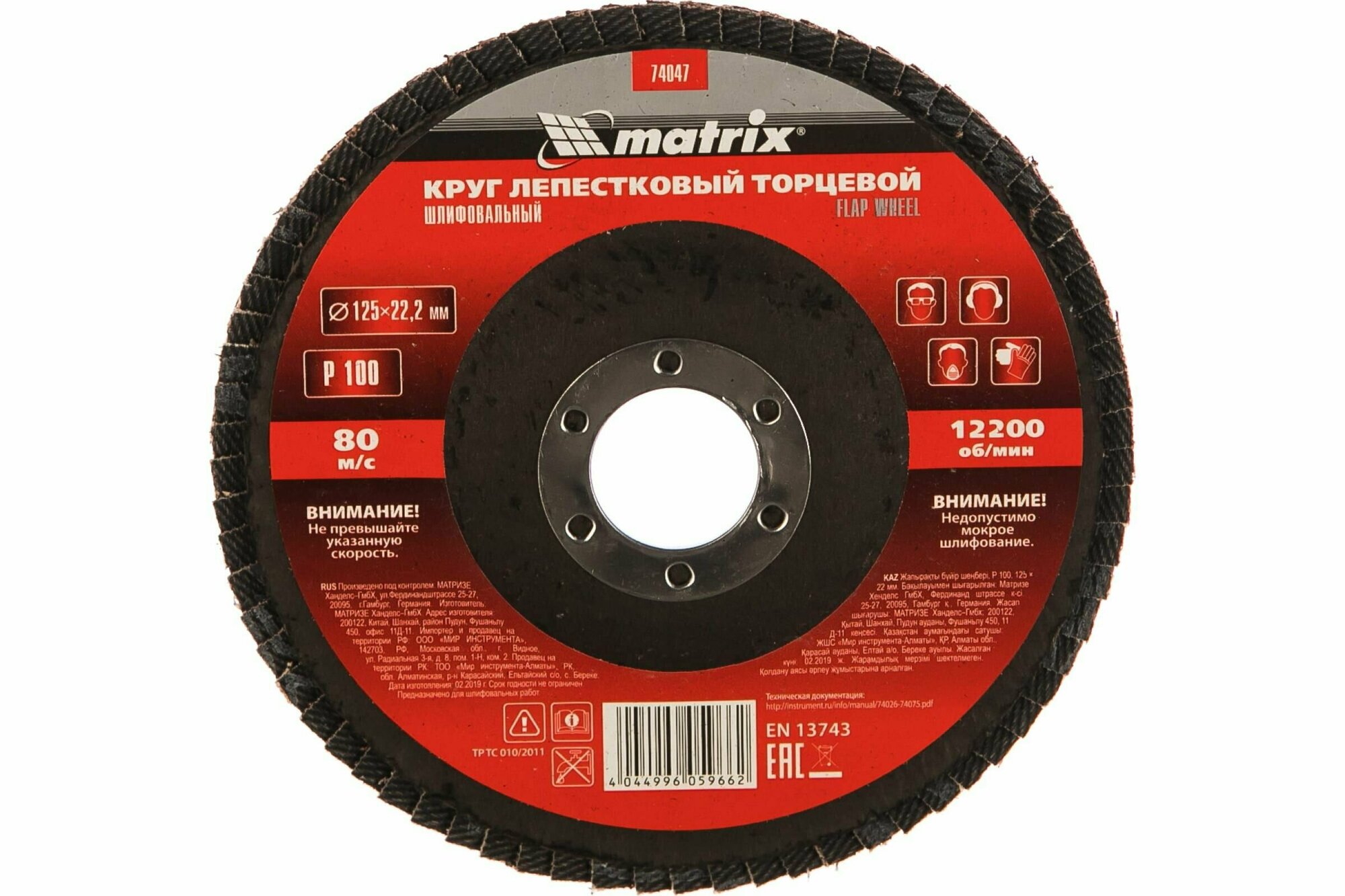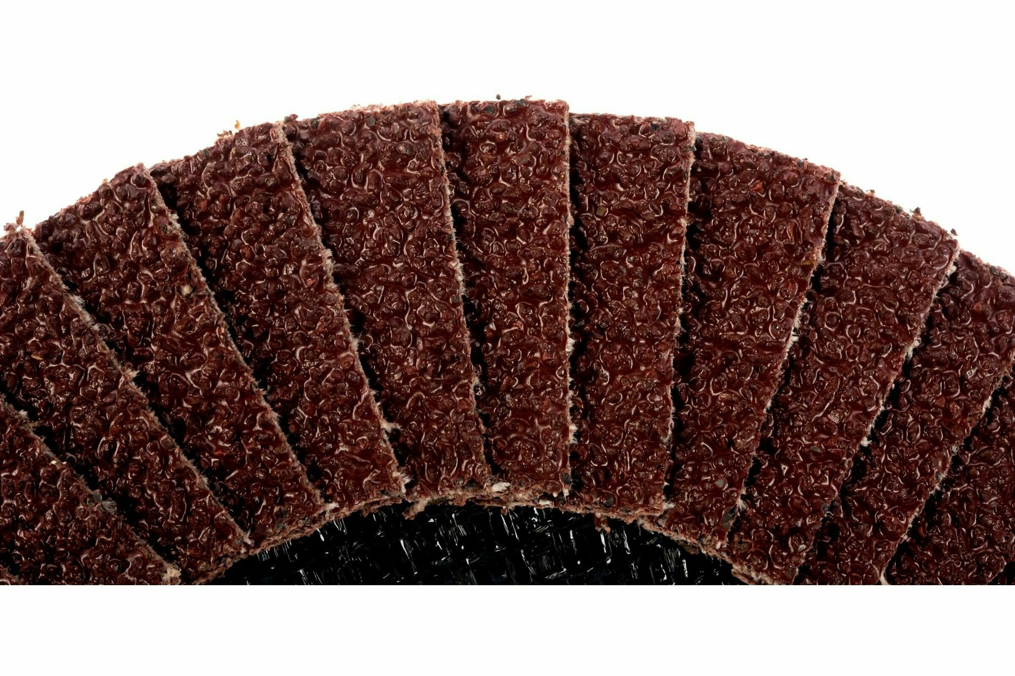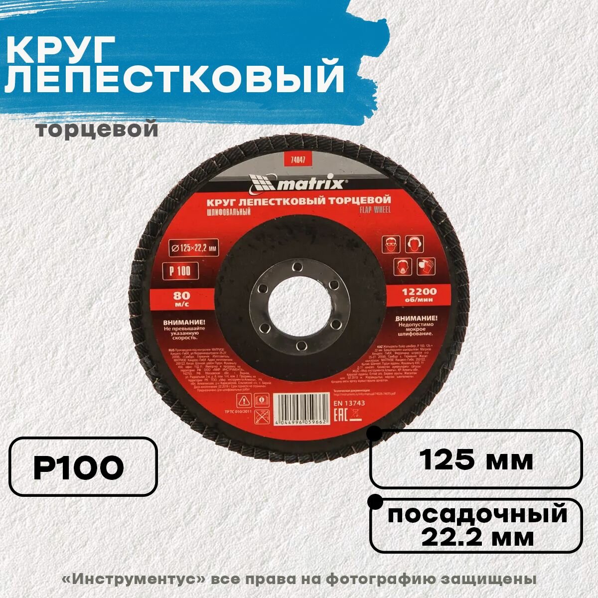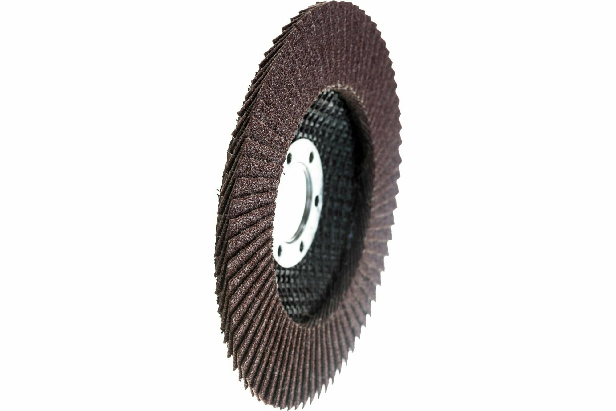 Лепестковый торцевой круг (Т29) KRANZ применяется с угловой шлифовальной машинкой (болгаркой) соответствующего диаметра. Используется для обработки металла, древесины, пластмасс: позволяет зачищать сварочные швы и ржавчину, подготавливать поверхность под покраску. Шкурки на тканевой основе с высокопрочным абразивом корунд (Al2O3) располагаются на кругу "лепестками". Такая форма позволяет материалу равномерно стираться во время работы, открывая все новые слои абразива и максимально используя его ресурс. Оснастка такого типа обеспечивает работу без шума, постоянную скорость и плавность вращения, отсутствие перегрева, высокое качество зачистки, дает возможность обрабатывать поверхности сложной формы. Диаметр круга 125 мм, диаметр посадочного отверстия 22.2 мм, размер зерна Р100 (125-106 мкм).