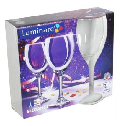 Набор бокалов для вина ЭЛЕГАНС 2шт 250мл. Бокалы Luminarc лаконично подходят под современные интерьеры и органично вливаются в атмосферу праздника. Оригинальный дизайн привлекает внимание, добавляя оригинальности Вашей сервировке стола. Гости обязательно оценят уютную и комофртную атмосферу. Закаленное стекло бренда Luminarc не мутнеет с течением времени и сохраняет первоначальный блеск. Также оно обладает повышенной ударопрочностью и безопасностью: при падении изделие разбивается на крупные неострые куски. Можно использовать в посудомоечной машине.Высота 16,5 см, диаметр верха 6,8 см, высота ножки 7,5 см.