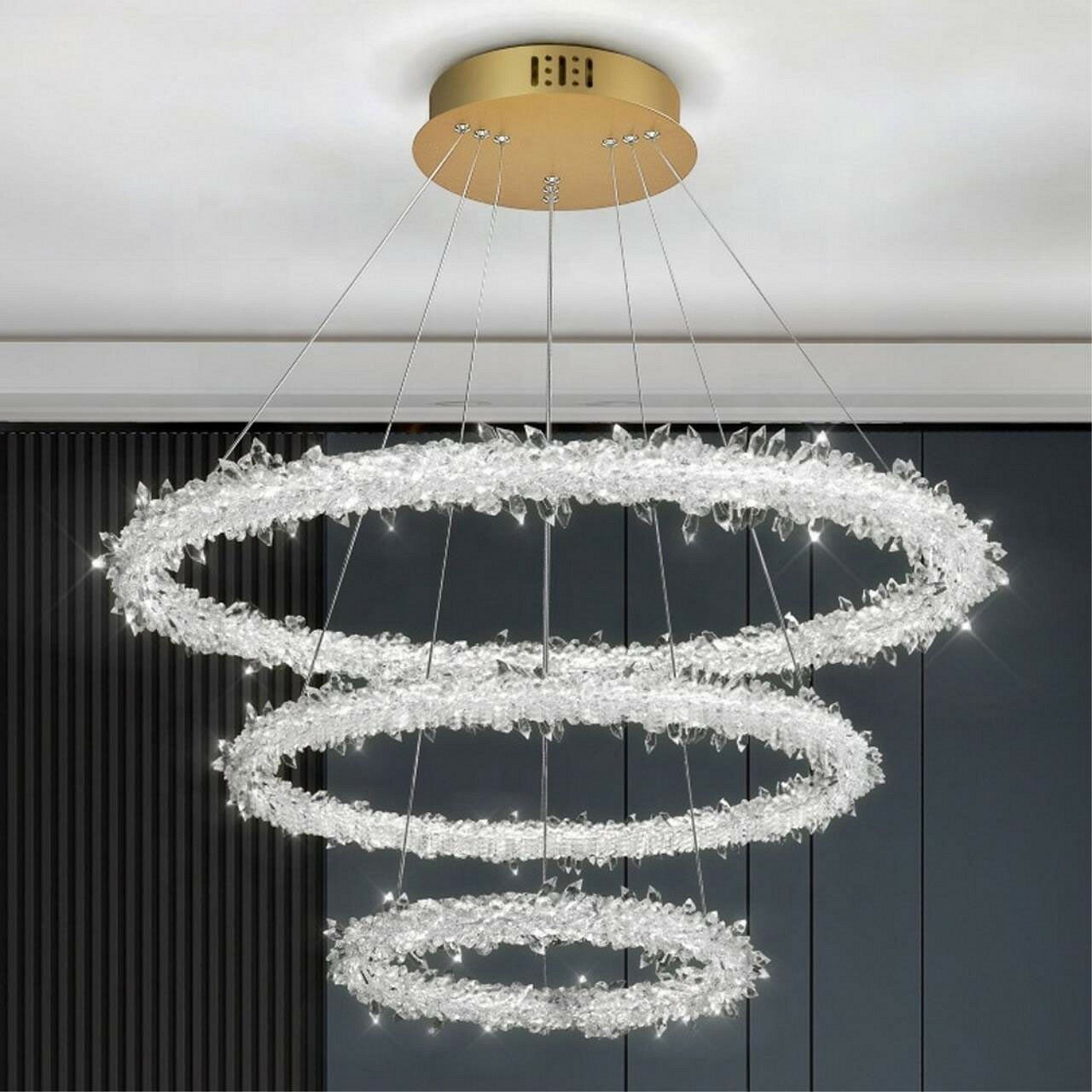 Серия подвесных светодиодных светильников «Merion» с основанием окутанным кристаллами, оригинальной объемной формой и основанием цвета бронзы выглядит современно, привлекательно и стильно. Рекомендуемая площадь освещения: 21 кв.м. Диаметры колец: 80 см, 60 см, 40 см.