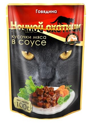 Ночной охотник влажный корм для кошек кусочки с говядиной в соусе (100 г)