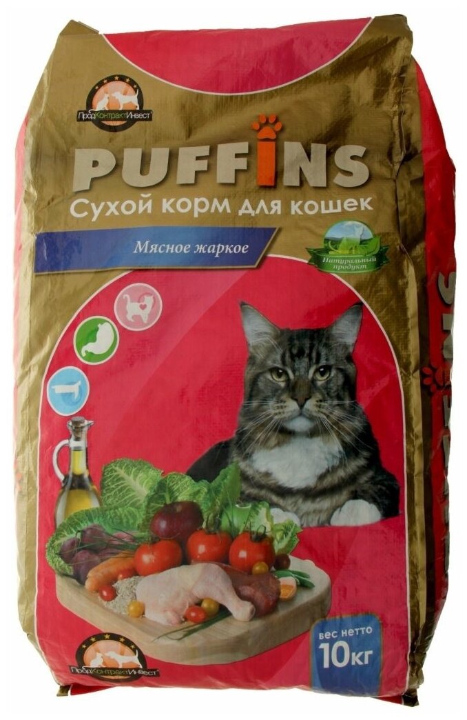 Puffins Мясное жаркое сухой корм для кошек (10 кг) мясо 10 кг