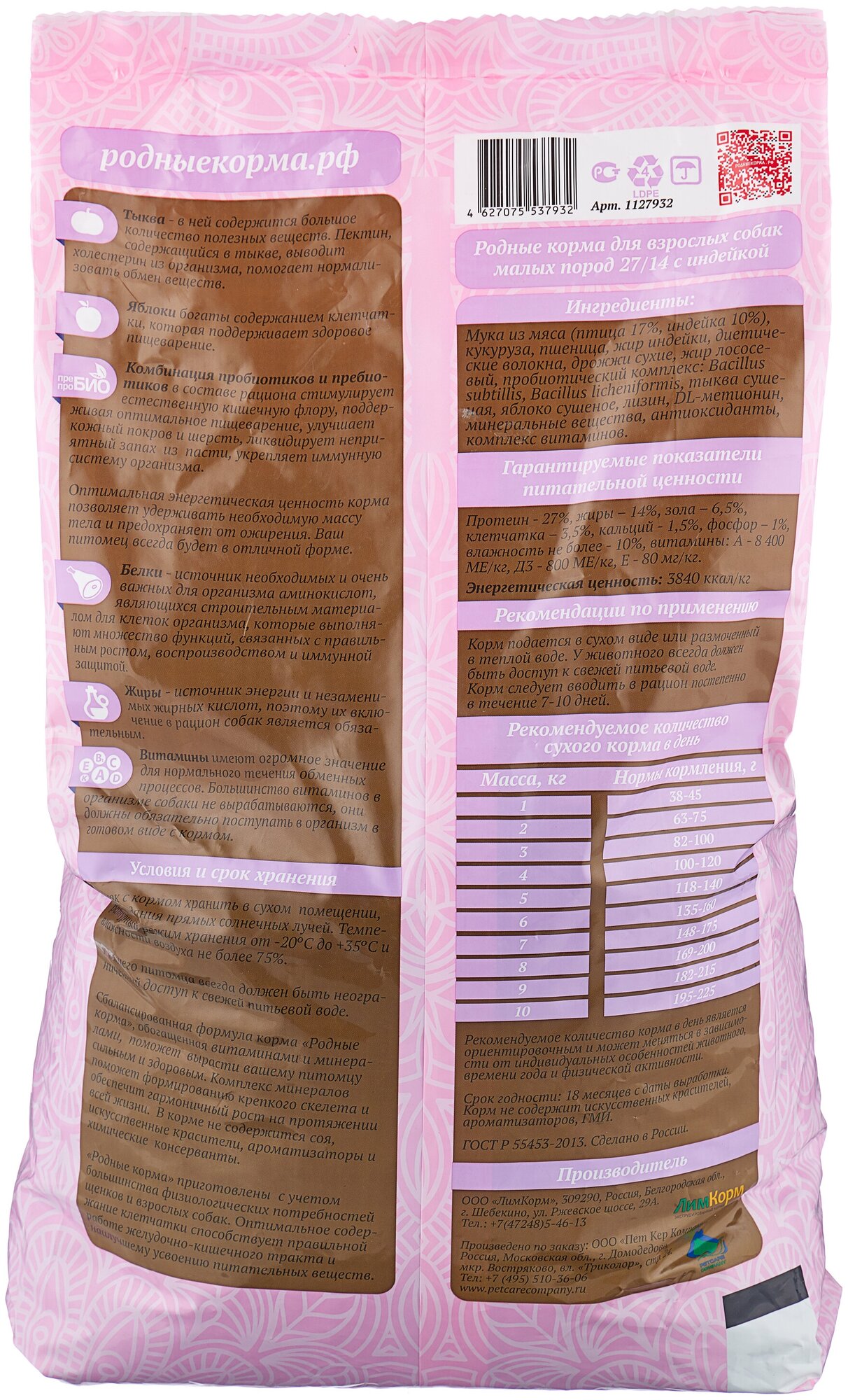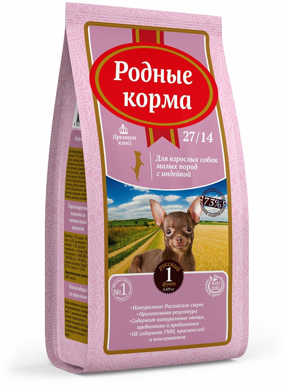 Родные корма сухой корм для взрослых собак малых пород индейка (204 кг) индейка 2,05 кг