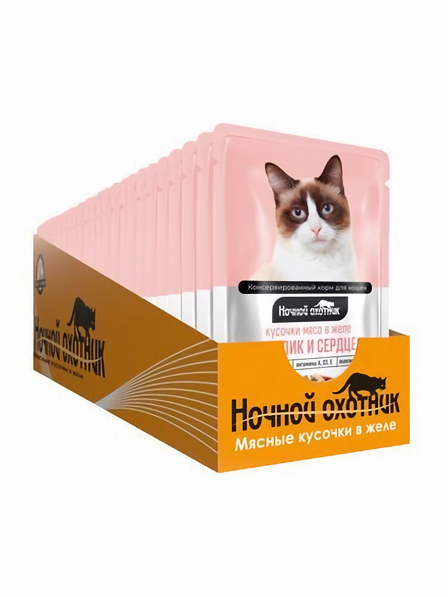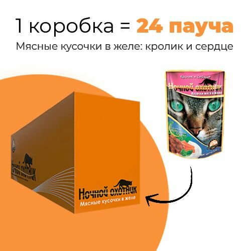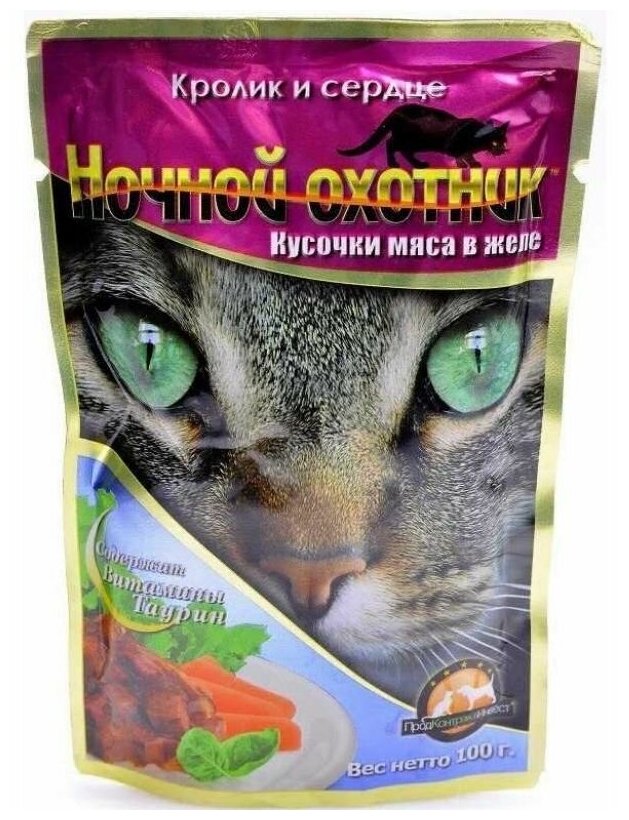 Ночной охотник влажный корм для кошек кусочки с кроликом и сердцем в желе (100 г) кролик, сердце 100 г