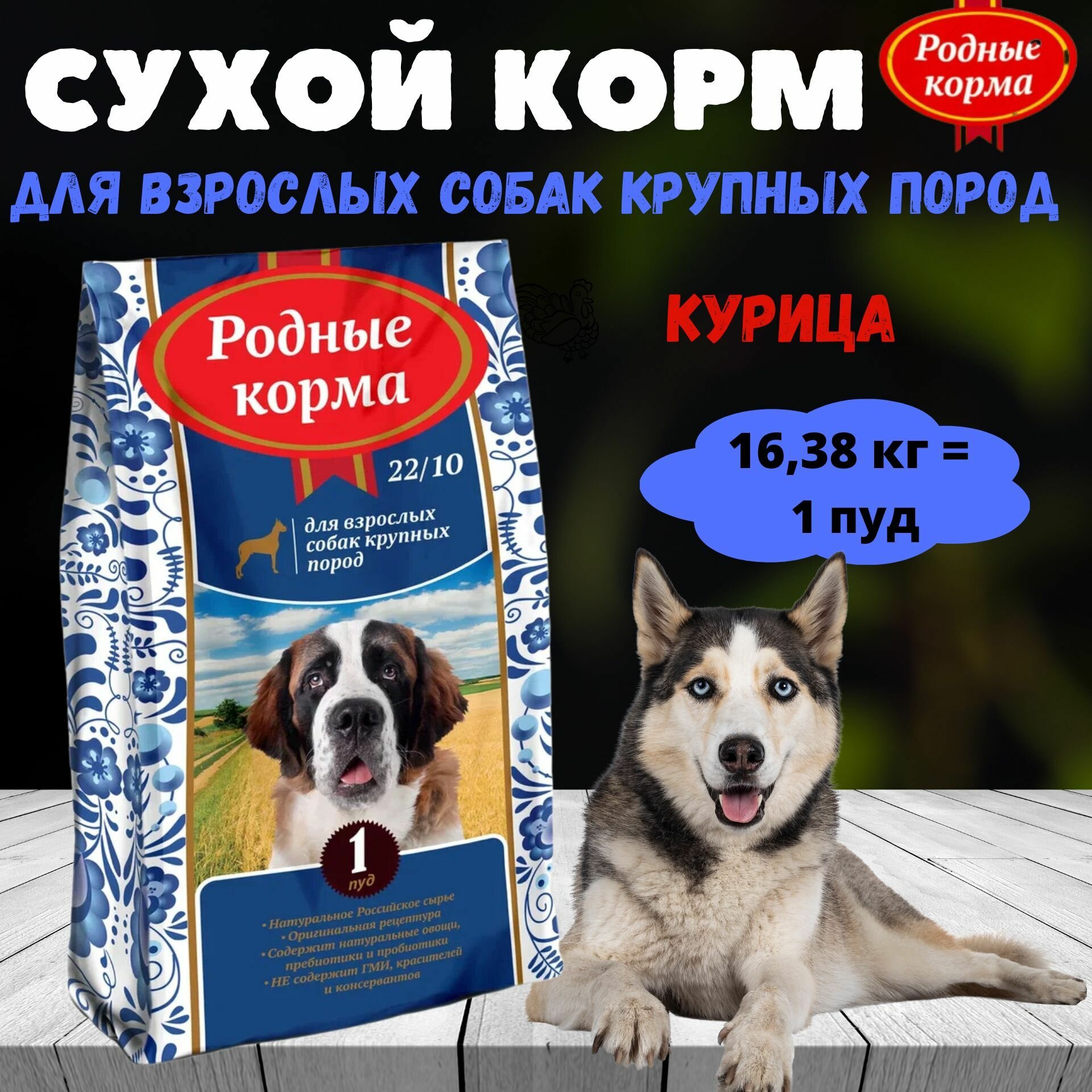 Родные Корма корм для взрослых собак крупных пород курица (10 кг)