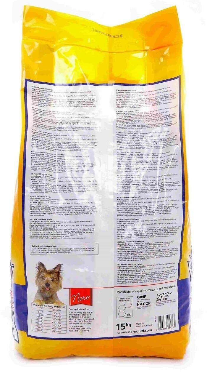 Nero Gold корм для собак мясной коктейль (18 кг) Adult Dog Croc Economy with Love