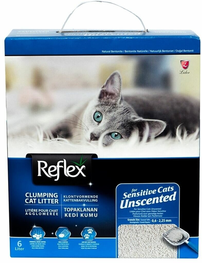 Reflex - это элитная серия высококачественных комкующихся наполнителей с уникальными свойствами. Производится из специально обработанной и очищенной от пыли глины. Гранулы наполнителя обладают уникальными впитывающими свойствами и содержат активный компонент - специально обработанный активированный уголь, который максимально уничтожает неприятный запах. Наполнитель Reflex не только отлично впитывает, но и образует крепкие, удобные для уборки комки, обеспечивая продолжительную свежесть в доме. Не содержит ароматизатор, подходит для кошек и людей, чувствительных к ароматизаторам.