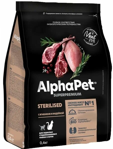 Модель: Корм сухой AlphaPet Superpremium Sterilised с уткой и индейкой для взрослых стерилизованных кошек и