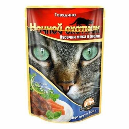 Ночной охотник влажный корм для кошек кусочки с говядиной в желе (100 г)