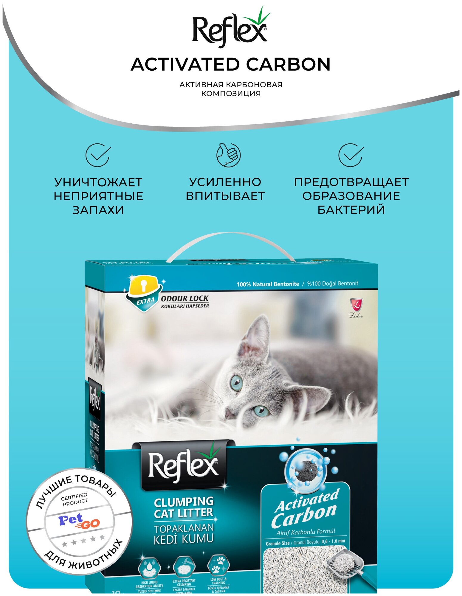 Reflex - это элитная серия высококачественных комкующихся наполнителей с уникальными свойствами. Производится из специально обработанной и очищенной от пыли глины. Гранулы наполнителя обладают уникальными впитывающими свойствами и содержат активный компонент - специально обработанный активированный уголь, который максимально уничтожает неприятный запах. Наполнитель Reflex не только отлично впитывает, но и образует крепкие, удобные для уборки комки, обеспечивая продолжительную свежесть в доме. Выделяет легкий приятный аромат.