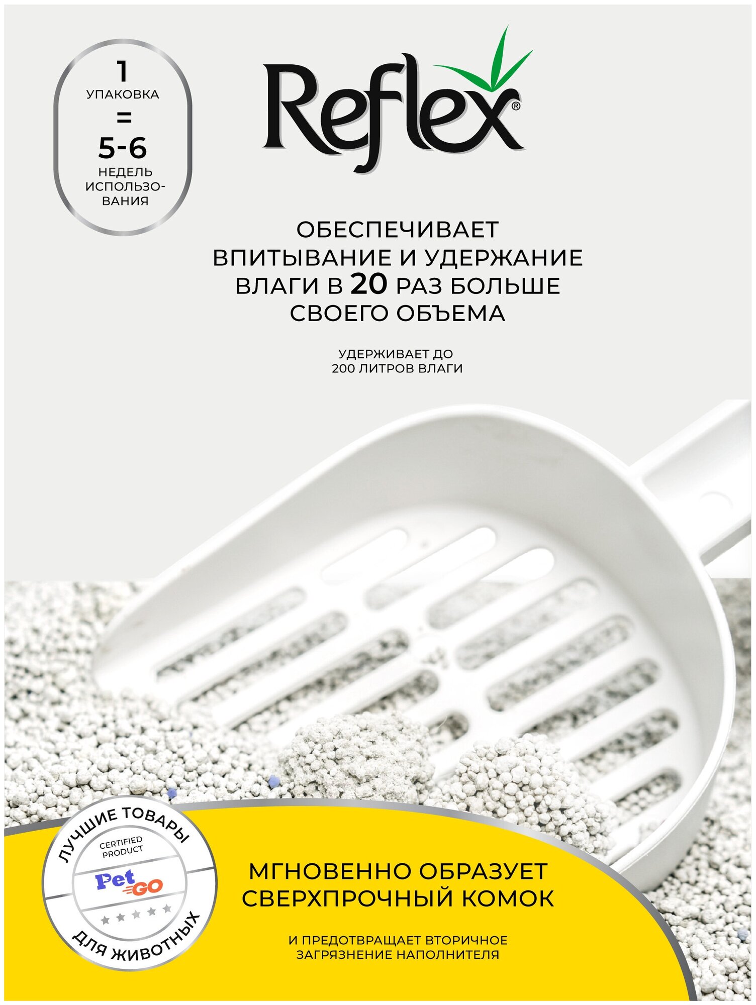 Reflex - это элитная серия высококачественных комкующихся наполнителей с уникальными свойствами. Производится из специально обработанной и очищенной от пыли глины. Гранулы наполнителя обладают уникальными впитывающими свойствами и содержат активный компонент - специально обработанный активированный уголь, который максимально уничтожает неприятный запах. Наполнитель Reflex не только отлично впитывает, но и образует крепкие, удобные для уборки комки, обеспечивая продолжительную свежесть в доме. Выделяет легкий приятный аромат.