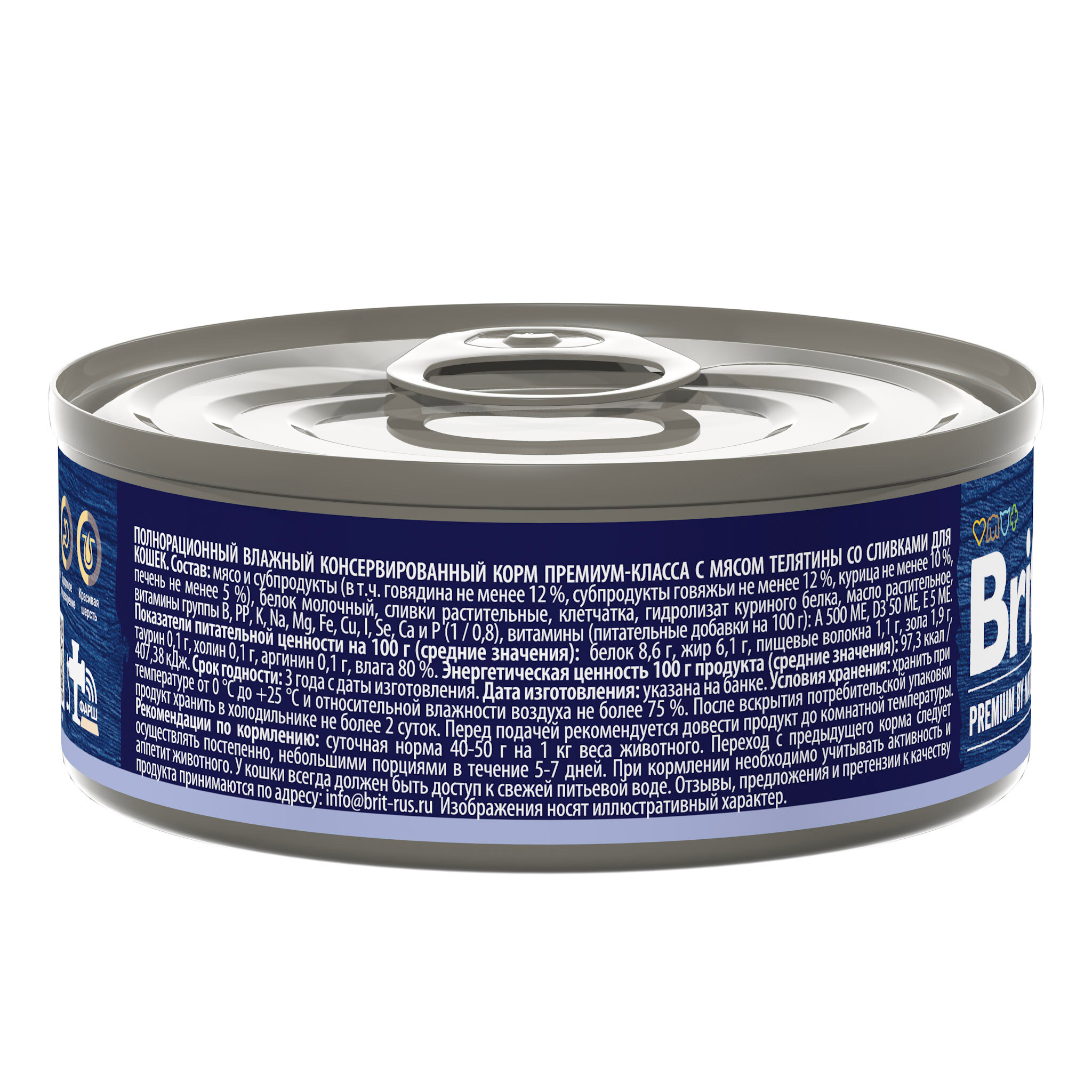 Brit Premium by Nature влажный корм для кошек с мясом телятины со сливками (100 г)