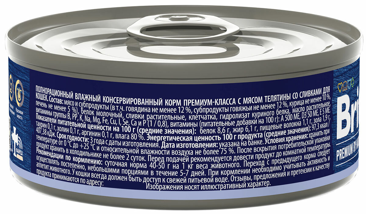 Полнорационный консервированный корм премиум класса с телятиной со сливками для взрослых кошек