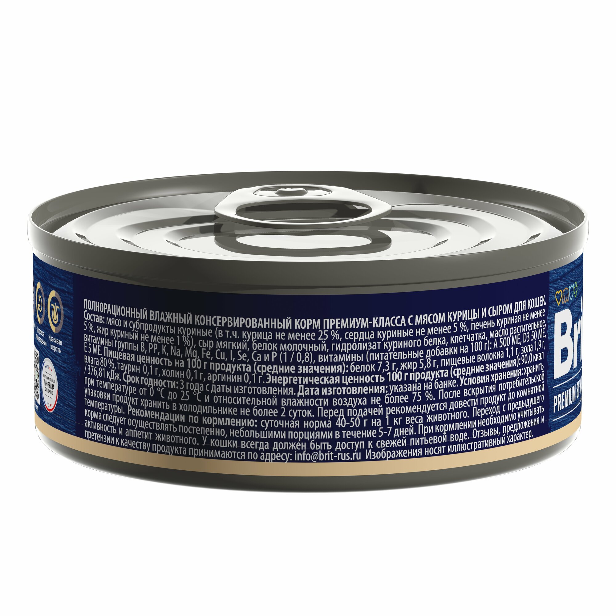 Brit Premium by Nature влажный корм для кошек с мясом курицы и сыром (100 г)