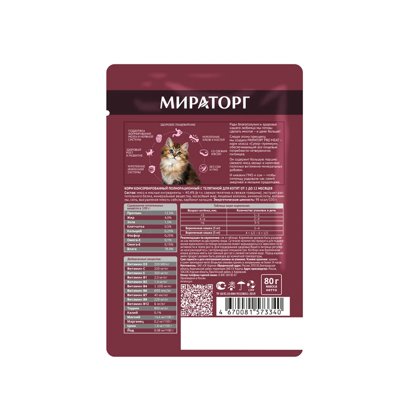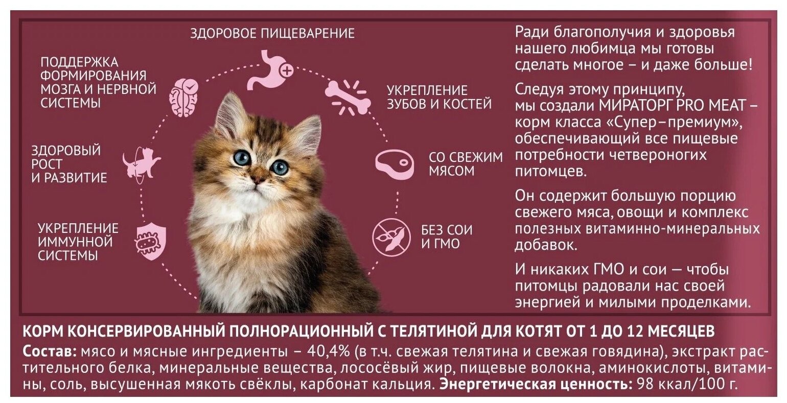 Мираторг Pro Meat влажный корм для котят с телятиной (80 г)