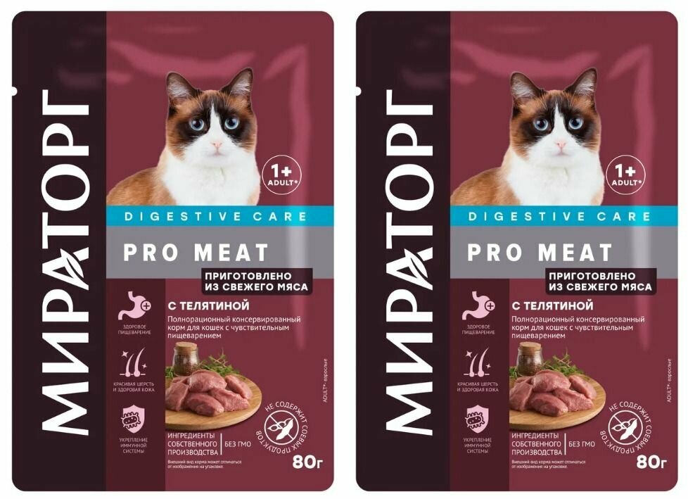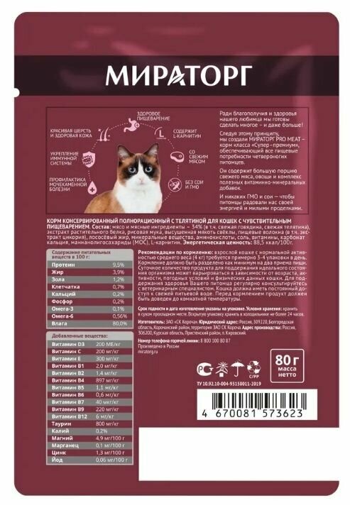 Мираторг Pro Meat влажный корм для кошек чувствительное пищеварение с телятиной (80 г)