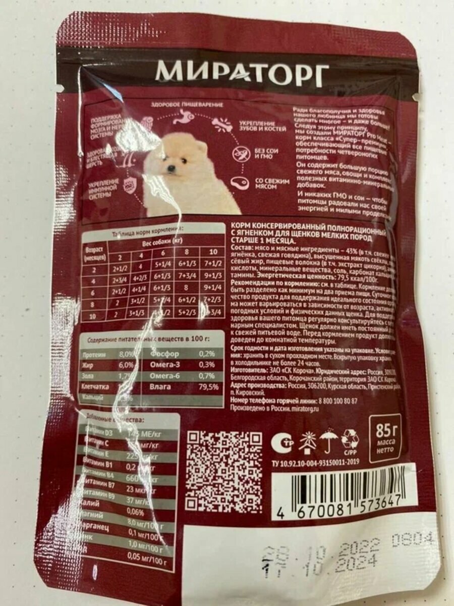 Мираторг Pro Meat влажный корм для щенков малых пород с ягненком (85 г)