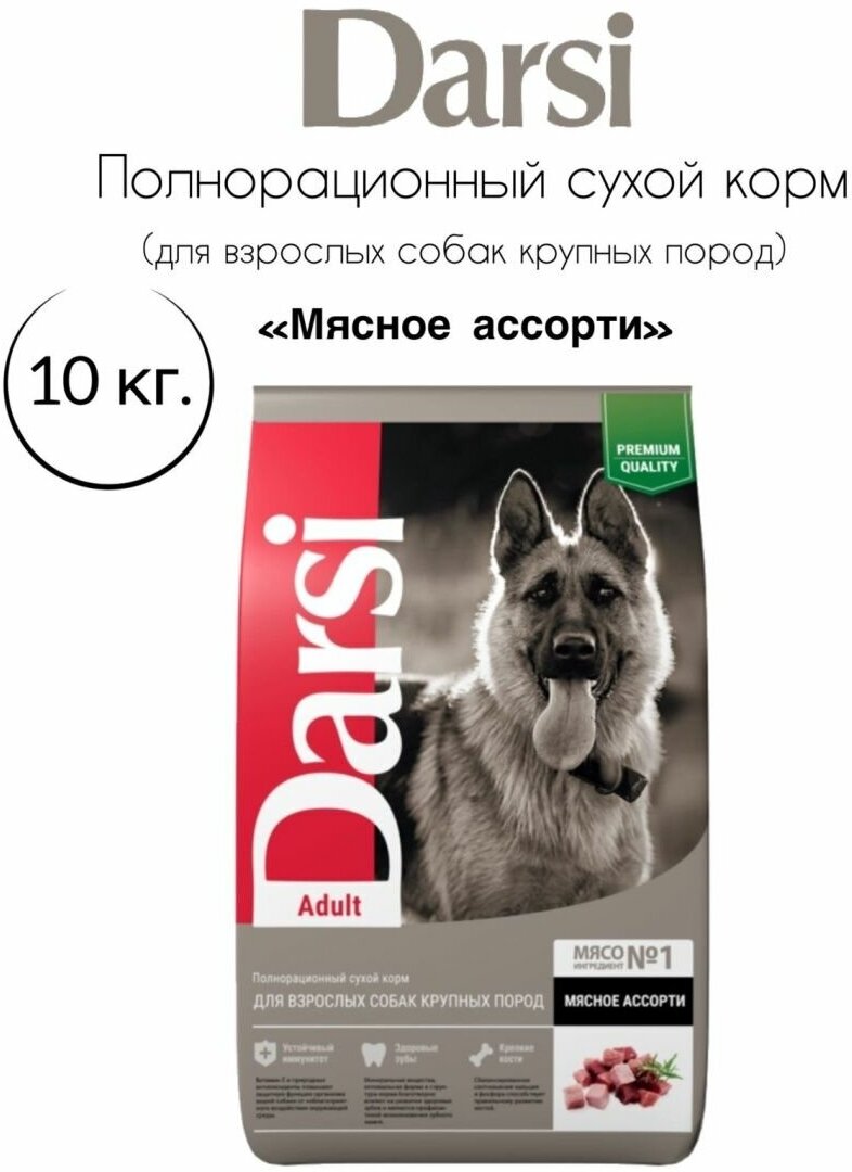 Darsi сухой корм для взрослых собак крупных пород мясное ассорти (10 кг)