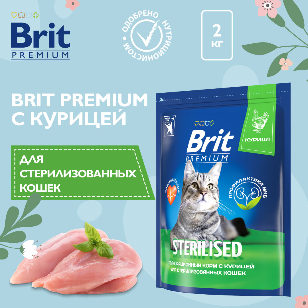 Brit Premium сухой корм для взрослых стерилизованных кошек с курицей (8 кг)