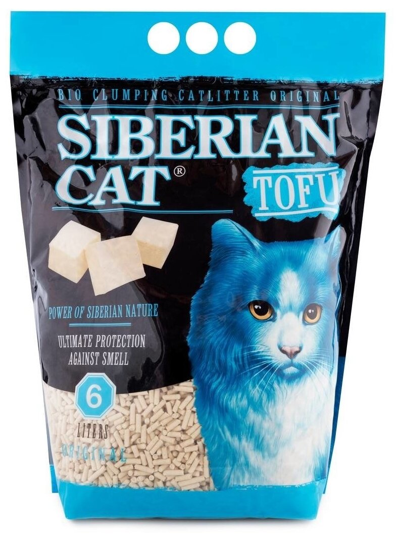 Сибирская Кошка TOFU комкующийся соевый наполнитель для кошачьих туалетов (6 л)