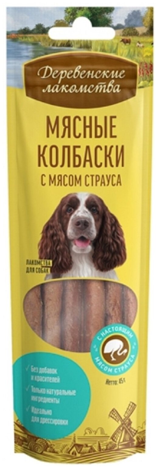 Деревенские лакомства для собак мясные колбаски с мясом страуса (45 г)
