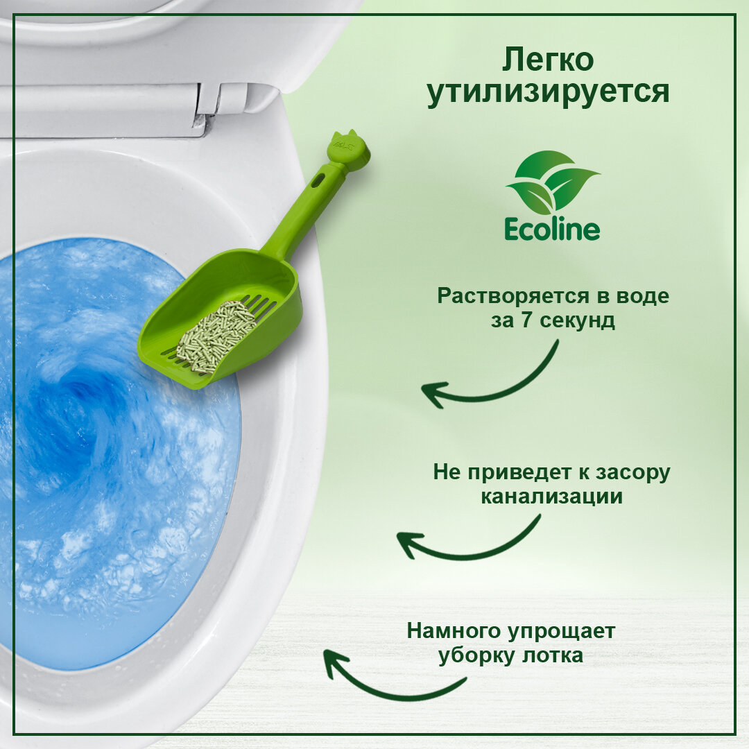 Наполнитель HOMECAT Эколайн удобен в использовании, утилизируется в туалет, 100% биоразлагаемый продукт, экономичен